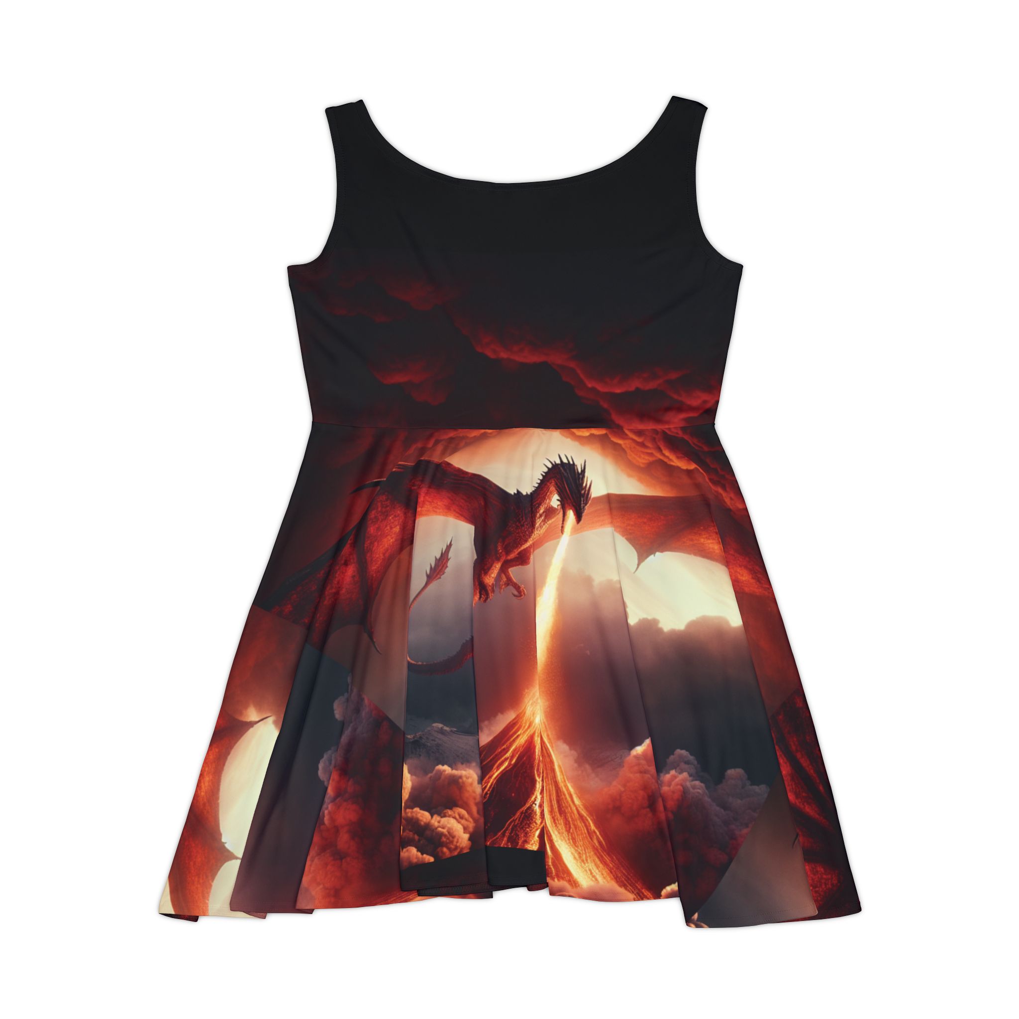 Ignite your wardrobe with a look that’s as bold as a dragon’s breath. This Red Dragon Skater Dress features an immersive, all-over print of a majestic fire-breather soaring through a volcanic landscape. Designed for the fearless, this dress combines a high-fashion silhouette with the raw power of fantasy lore.